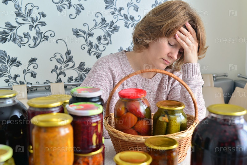 Уставшая домохозяйка с соленьями