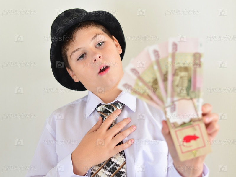 Мальчик в костюме с купюрами в мышеловке