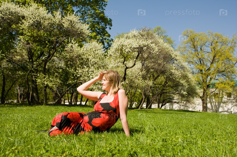 Беременная женщина в парке