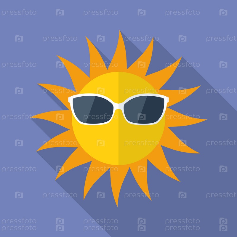 Солнце в очках с иконой. Современный плоский стиль с длинной тенью