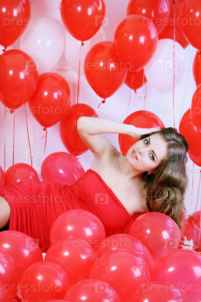 Девушка с длинными волосами среди воздушных шаров