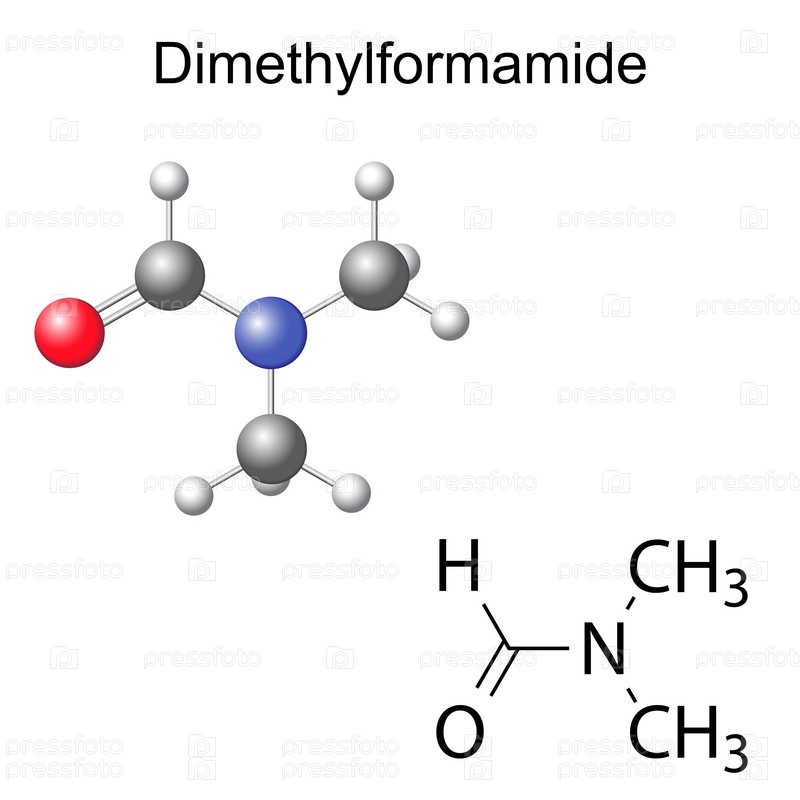 Химическая формула и модель диметилформамида