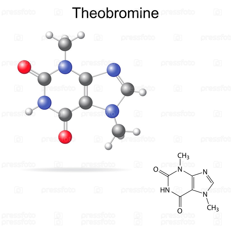 Модель и химическая формула теобромина