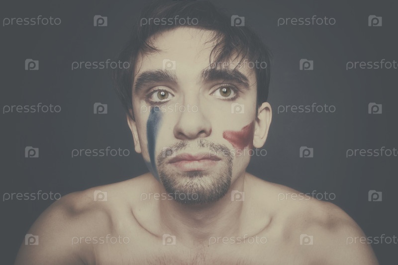 Портрет красивой молодой человек с краской на его лице