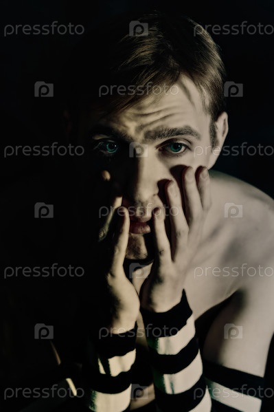 Портрет грустно молодого человека в полосатые перчатки