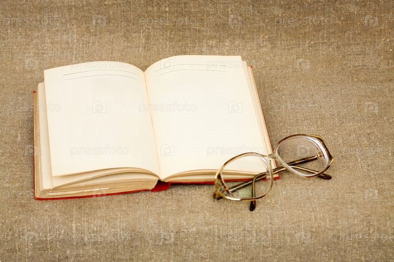 Древняя книга и очки на фоне ткани