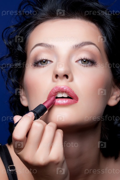 Молодая женщина красит губы