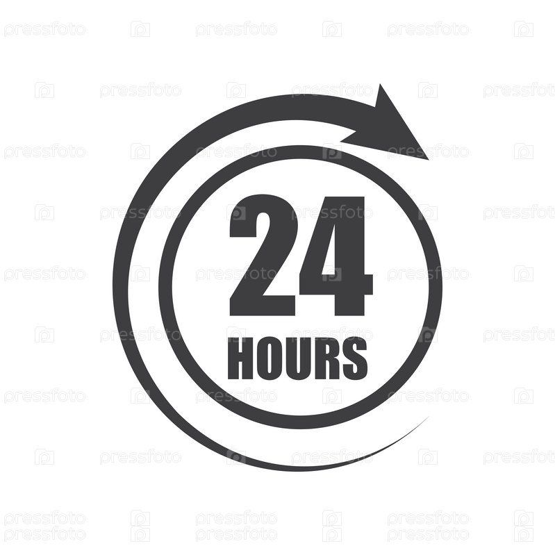 Значок символа, подписали открытое вокруг часов или 24 часа в сутки