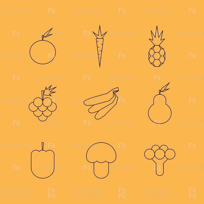 Фрукты и овощи линии значки