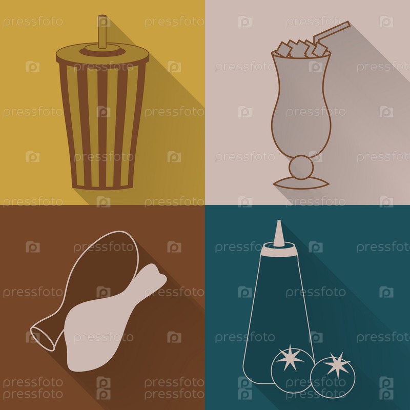 Набор из четырех значков цветными фаст-фуд