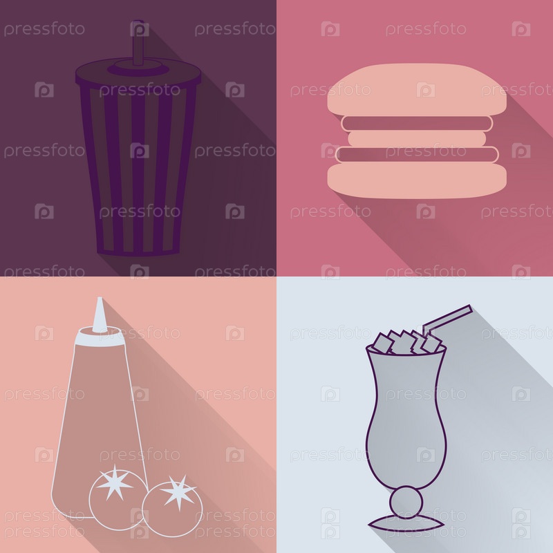 Набор из четырех значков цветными фаст-фуд
