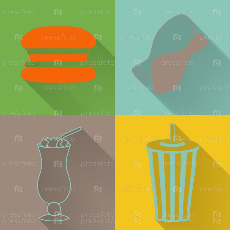 Набор из четырех значков цветными фаст-фуд