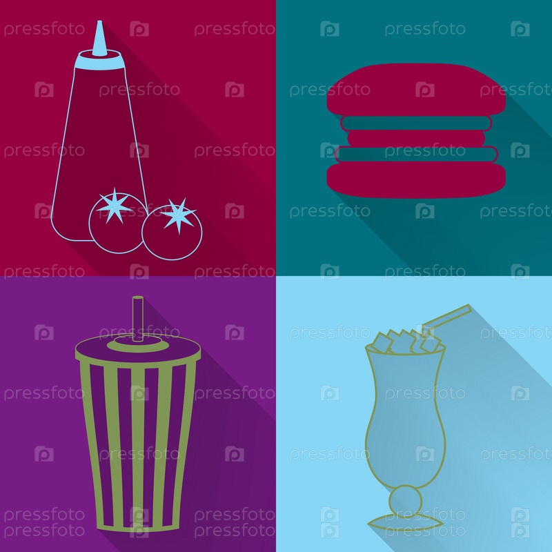 Набор из четырех значков цветными фаст-фуд