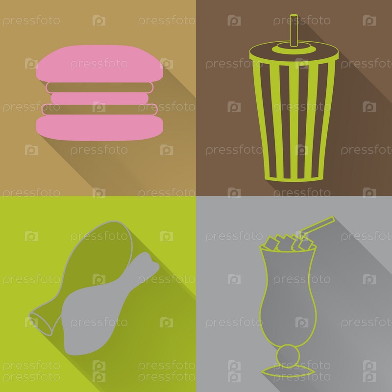 Набор из четырех значков цветными фаст-фуд