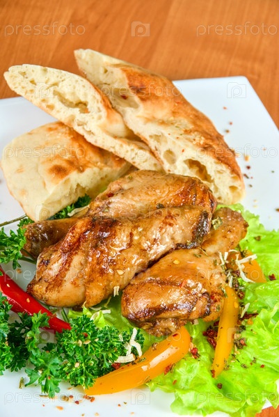 Курица с овощами и хлебом