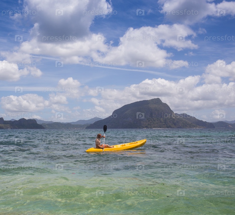 Молодые люди, гребля в каяк