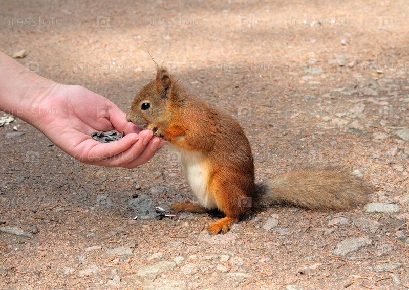 Белку кормят с руки