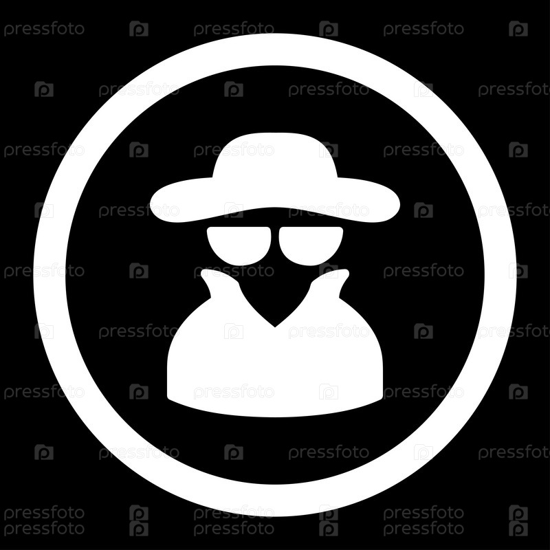 Шпион плоский белый цвет округлые глиф значок