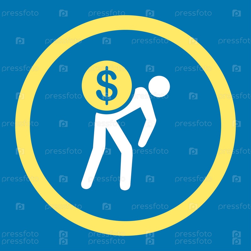 Деньги курьер плоский желтый и белый цвета округлые значок глифов