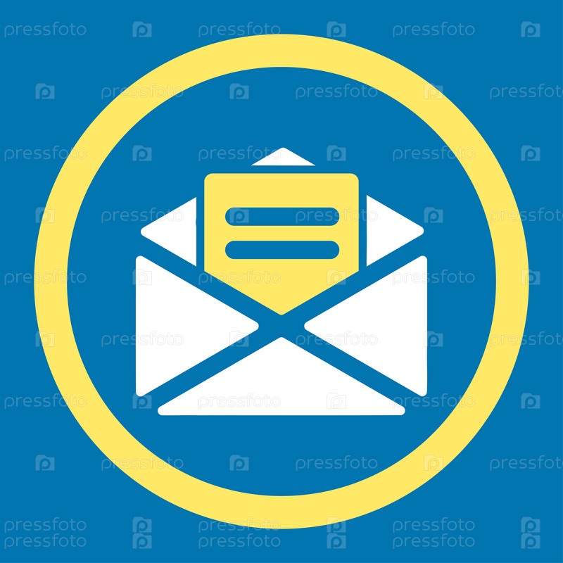Открытие почты плоский желтый и белый цвета округлые значок глифов