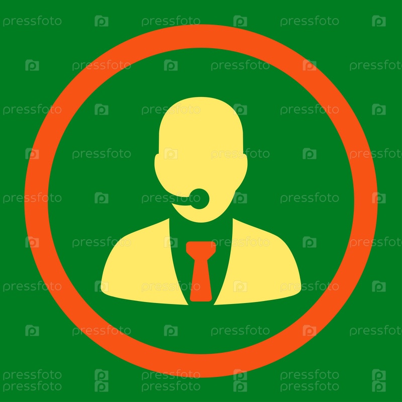 Оператор Call-центра плоский оранжевый и желтый цвета круглый глиф значок