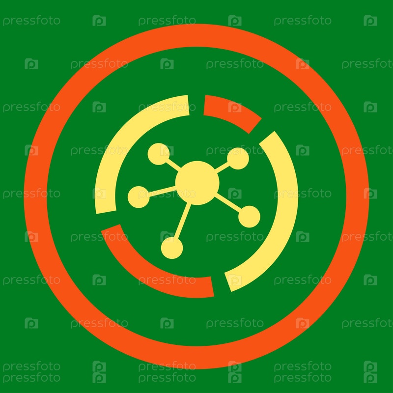 Схема соединения плоский оранжевый и желтый цвета округлые глиф значок