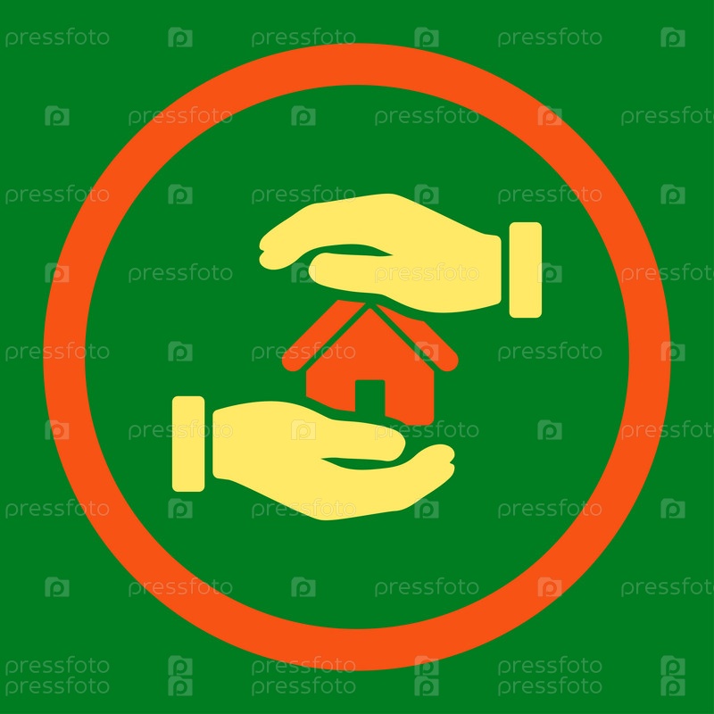 Страхование недвижимости плоский оранжевый и желтый цвета округлые глиф значок