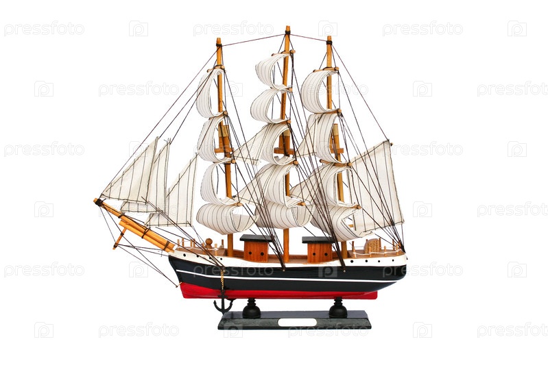 Модель парусника на белом фоне