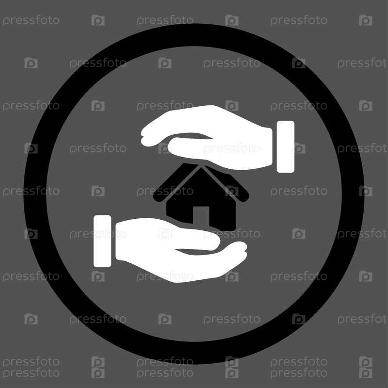 Недвижимость Страхование плоский черный и белый цвета округлые значок глифов