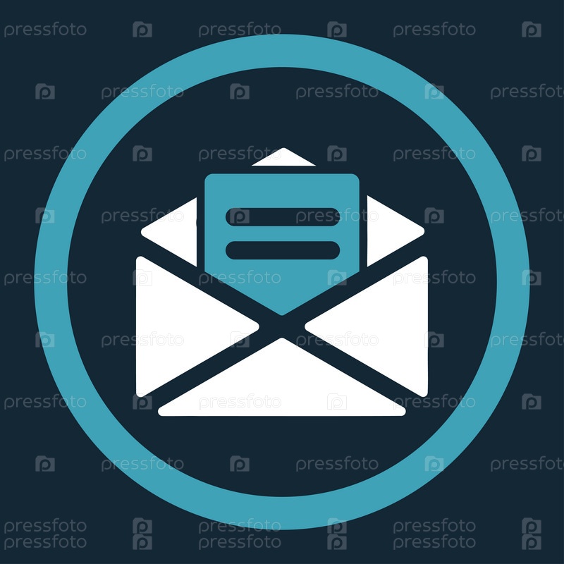 Открытие почты плоский синий и белый цвета округлые значок глифов