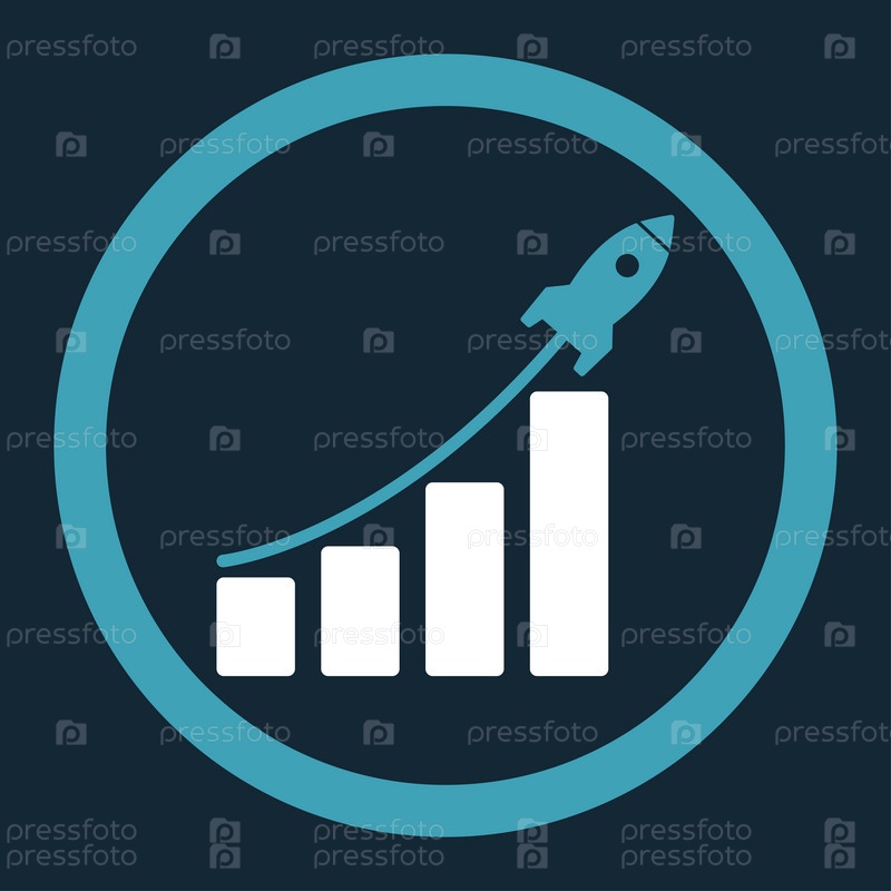 Запуска продаж плоские синего и белого цветов округлые глиф значок