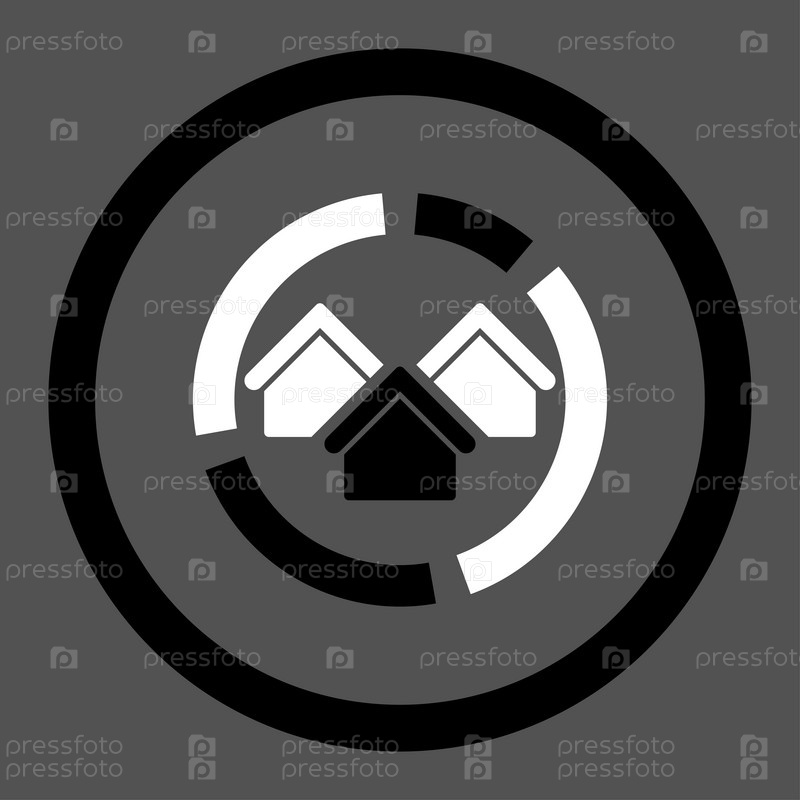 Недвижимость диаграмма плоский черный и белый цвета округлые глиф значок