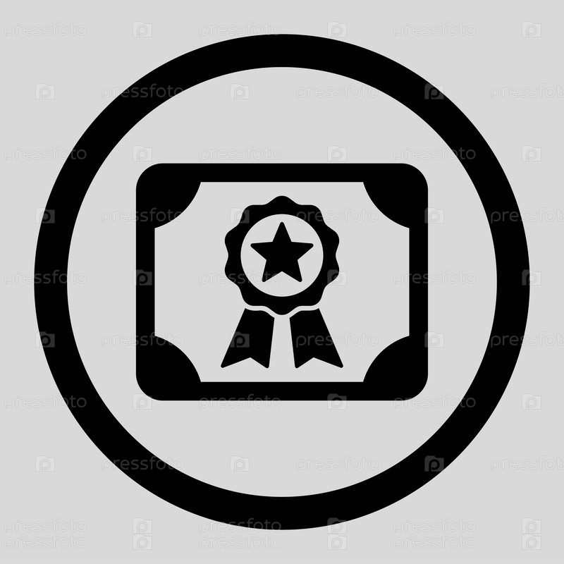 Сертификат плоский черный цвет округлые глиф значок