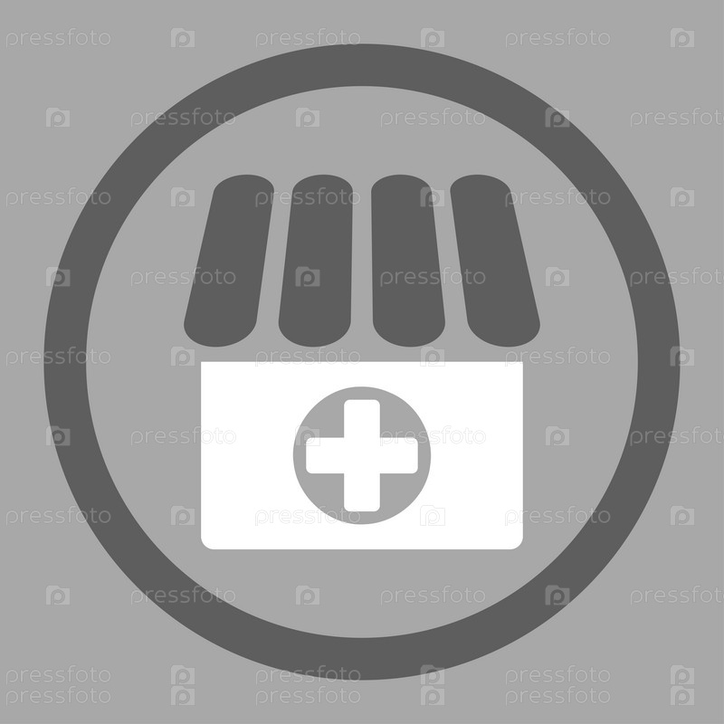 Аптека плоский темно серый и белый цвета округлые значок глифов
