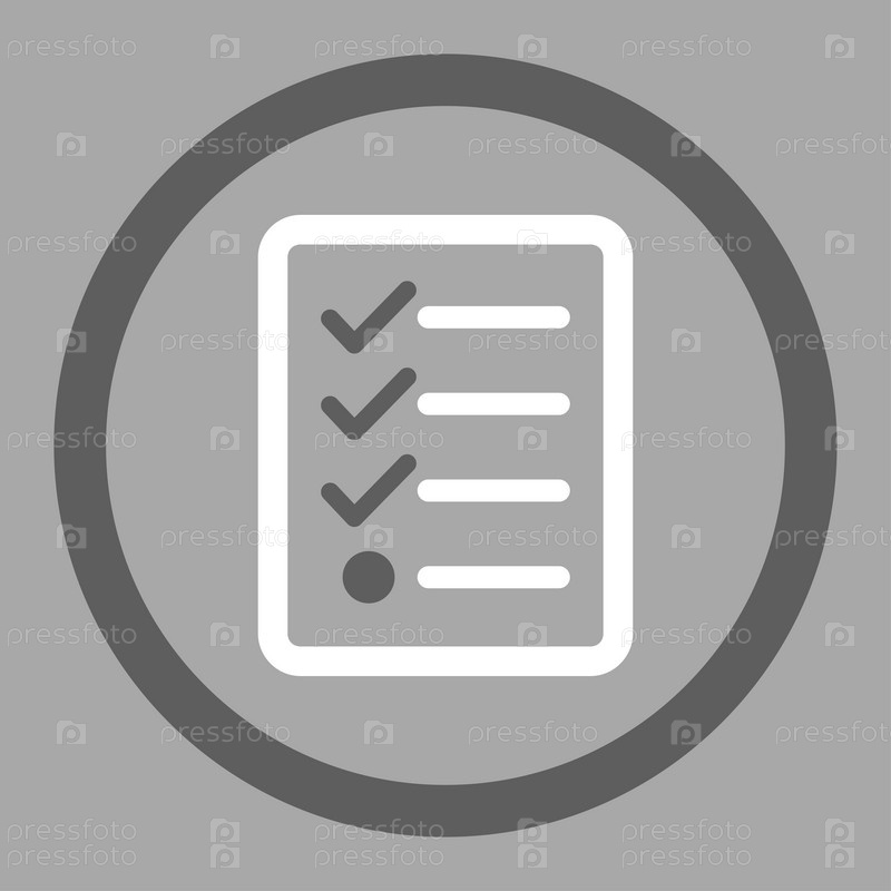 Контрольный список плоский темно серый и белый цвета округлые значок глифов