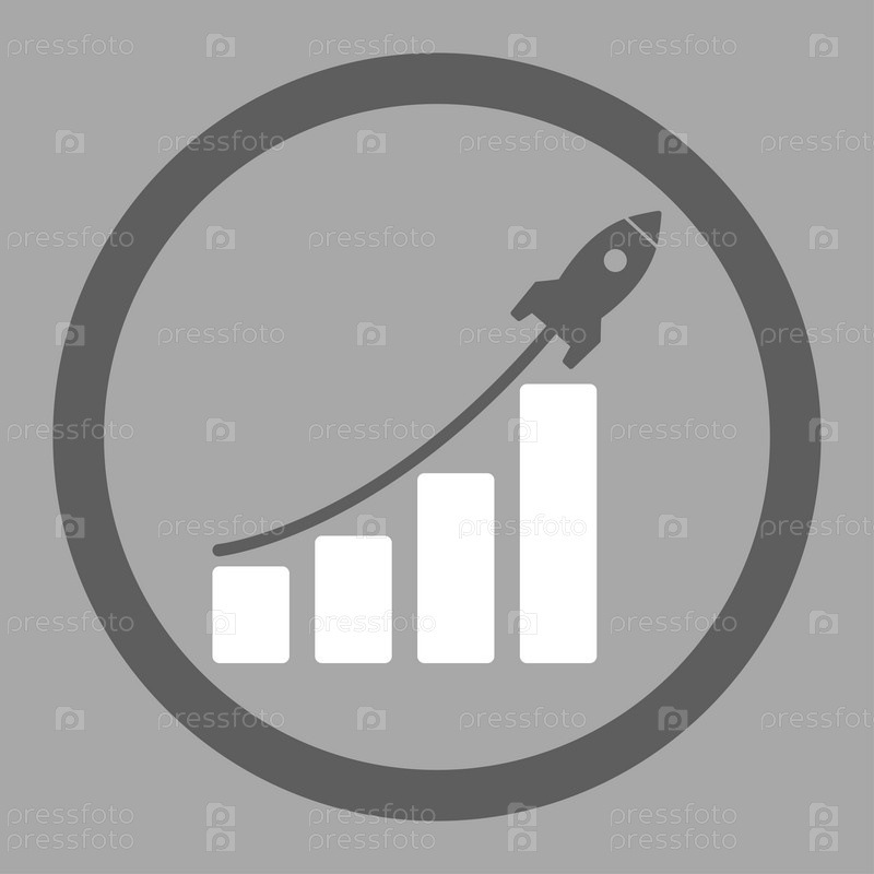 Запуска продаж плоский темно серый и белый цвета округлые значок глифов