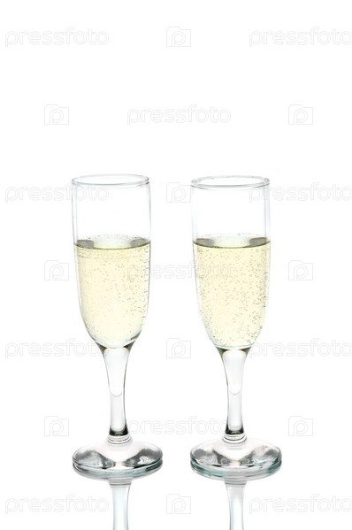 Бокалы с шампанским на белом фоне