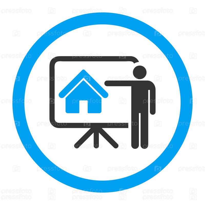 Риэлтор плоские синего и серого цвета округлые значок глифов