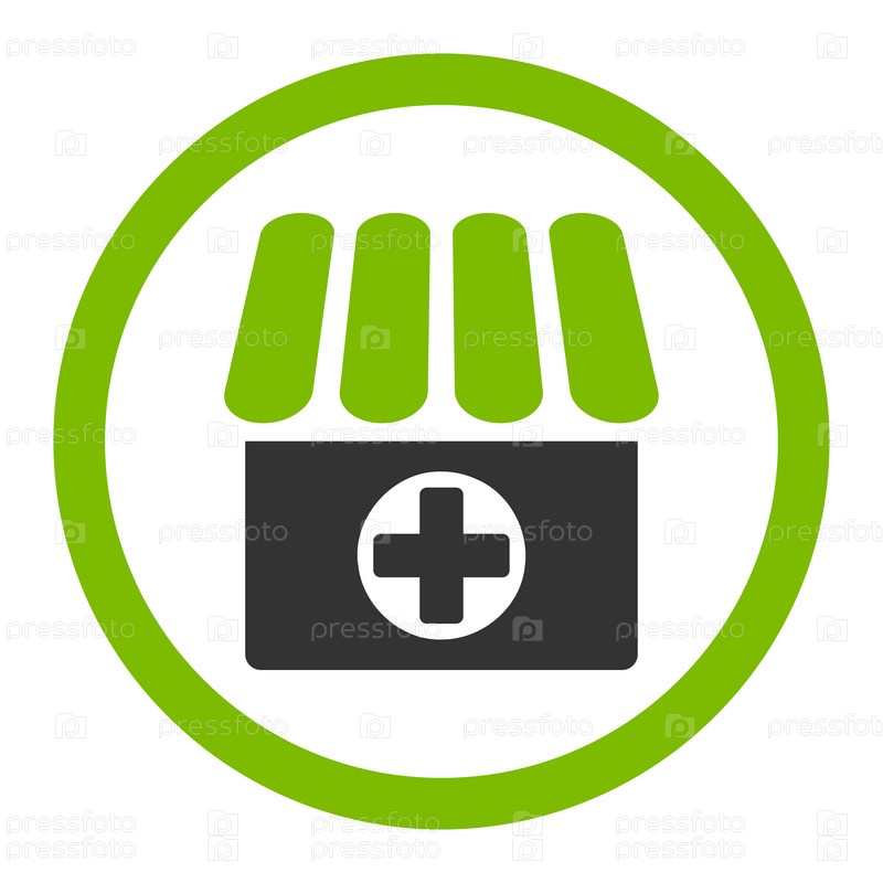Аптека плоский эко зеленый и серый цвета округлые значок глифов