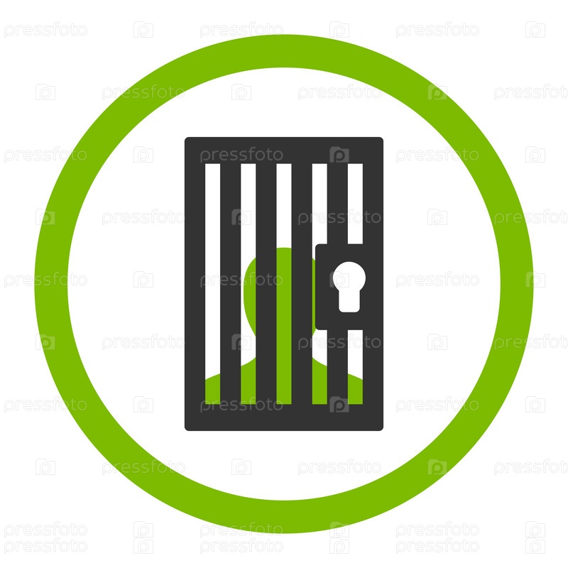 Тюрьма плоский эко зеленый и серый цвета округлые значок глифов