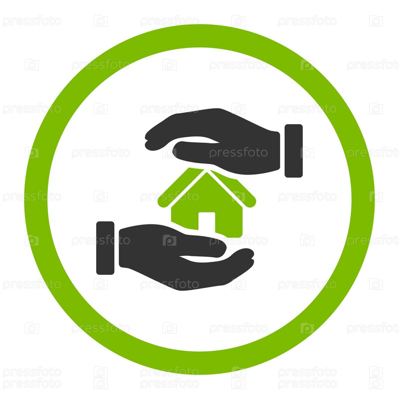 Недвижимость Страхование плоский эко зеленый и серый цвета округлые значок глифов