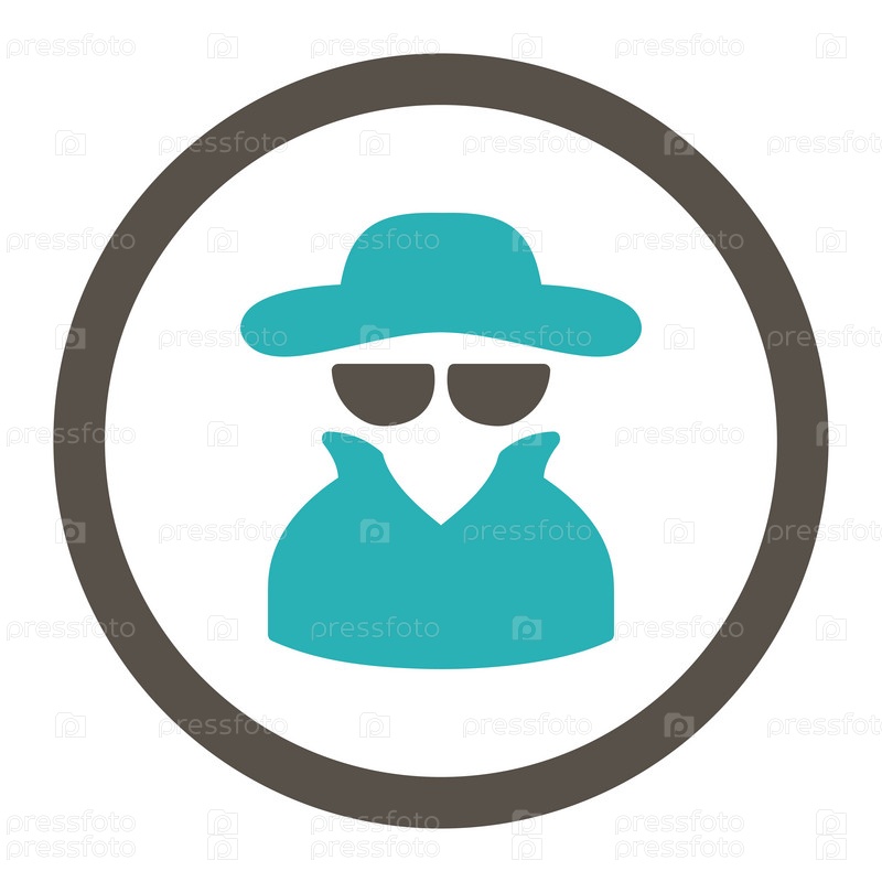 Шпион плоский серый и голубой цвета округлые глиф значок