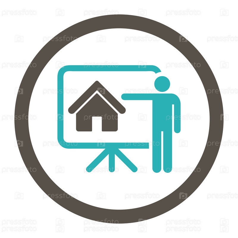 Риэлтор плоский серый и голубой цвета округлые глиф значок