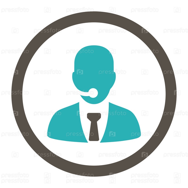 Оператор Call-центра плоский серый и синий цвета круглый глиф значок
