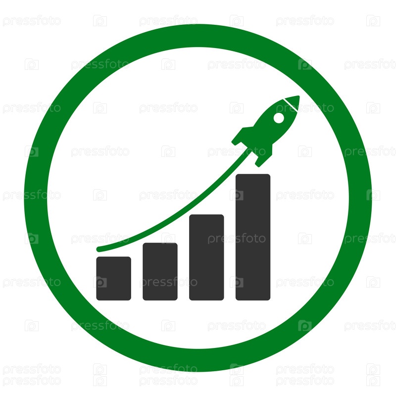 Запуска продаж плоский зеленый и серый цвета округлые значок глифов