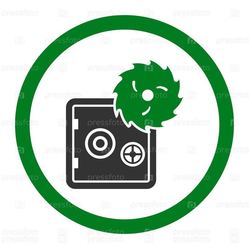 Взлом кражи плоский зеленый и серый цвета округлые значок глифов