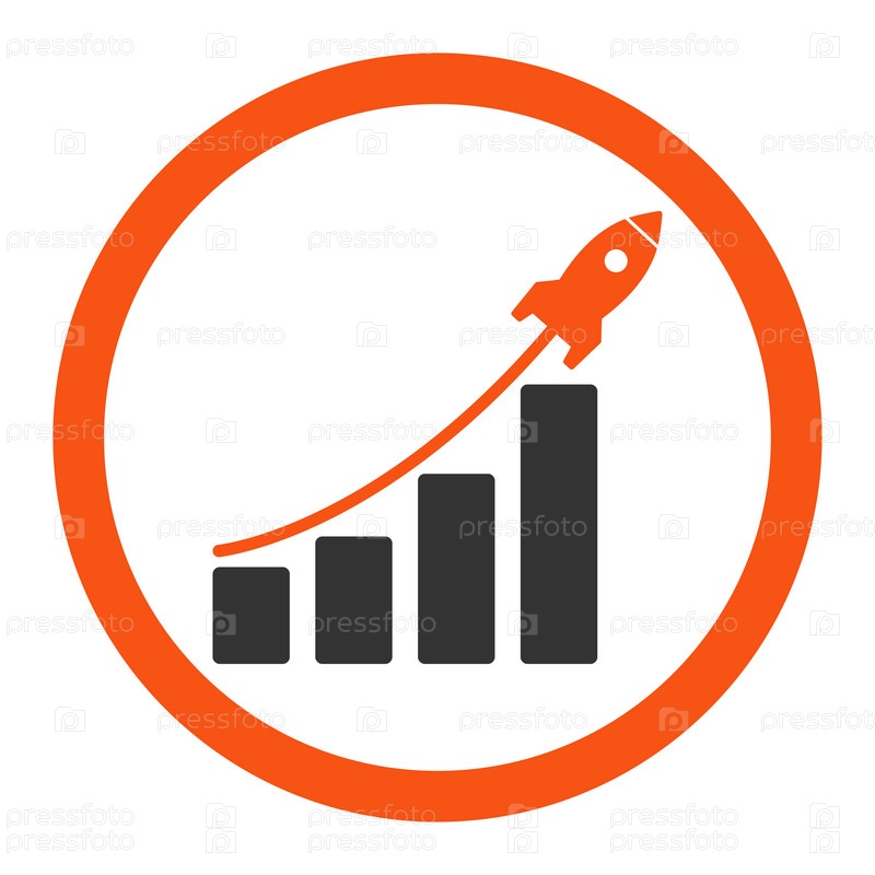 Округлые глиф значок запуска продаж плоский оранжевый и серый цвета