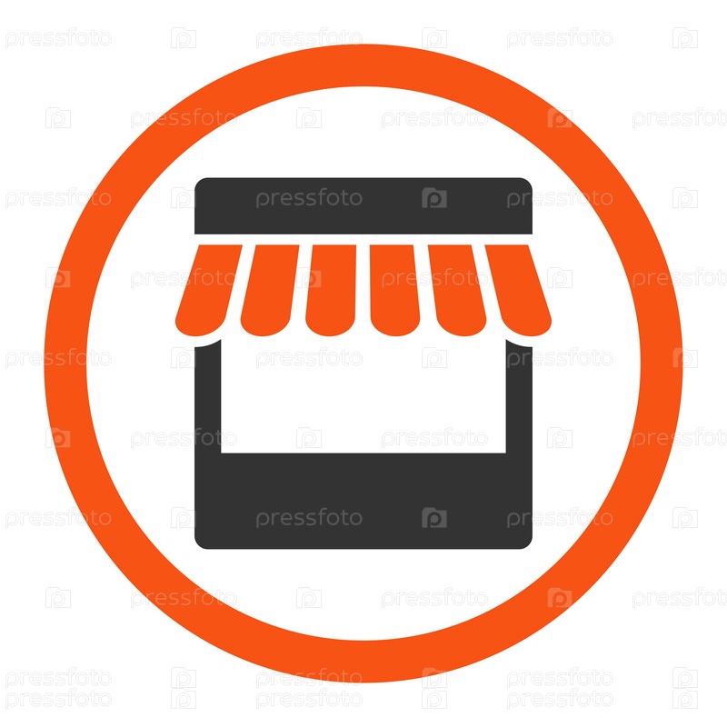 Магазин плоский оранжевый и серый цвета округлые глиф значок
