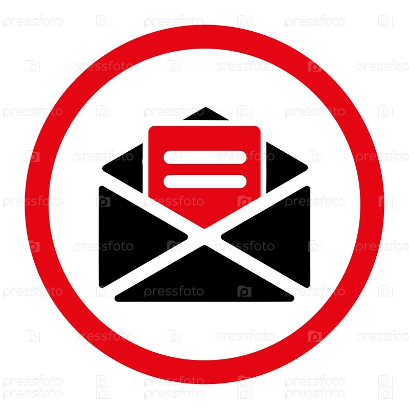 Открытие почты плоский интенсивный красный и черный цвета округлые глиф значок