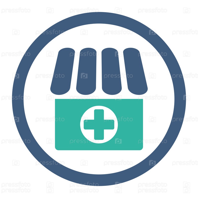 Аптека плоский кобальта и голубой цвета округлые глиф значок